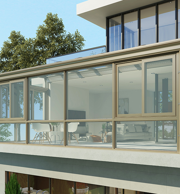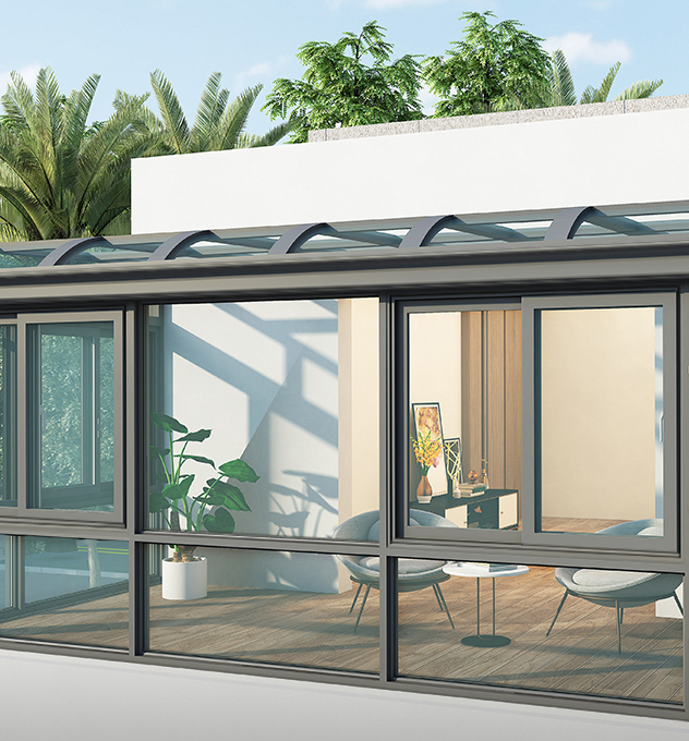 1..整体材料采用了铝合金结构组合而成,材质轻、性能好、密封性强;型材主要受力杆件厚度十足,可内套镀锌钢,具有较强的牢固性及承重能力,可做大跨度,大宽度无立面阳光房。
