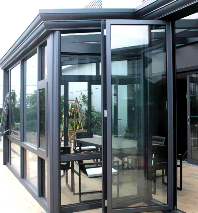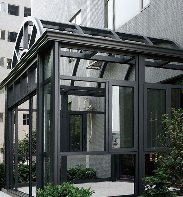 1..整体材料采用了铝合金结构组合而成,材质轻、性能好、密封性强;型材主要受力杆件厚度十足,可内套镀锌钢,具有较强的牢固性及承重能力,可做大跨度,大宽度无立面阳光房。