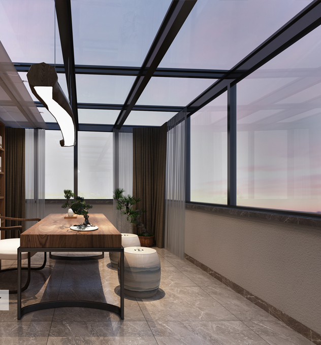 4.专业的防光房设计,总体上考虑了阳光房的防水性、安全性、美观性,增加内套射灯结构,与照明系体结合为一,改变以往阳光房照明布线的难点,大大提高了阳光房的使用寿命及性能。欧洲风格外观,万能转角连接的设计,尽显豪华气派。