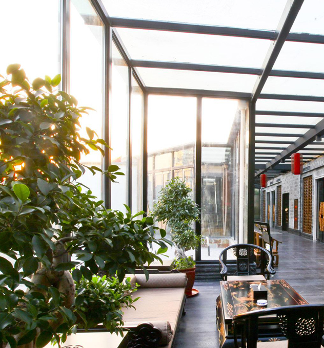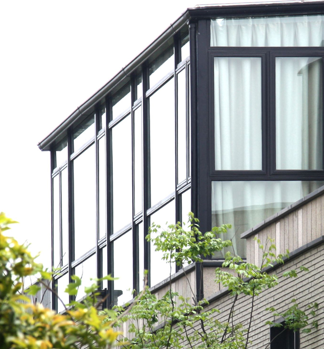 1..整体材料采用了铝合金结构组合而成,材质轻、性能好、密封性强;型材主要受力杆件厚度十足,可内套镀锌钢,具有较强的牢固性及承重能力,可做大跨度,大宽度无立面阳光房。