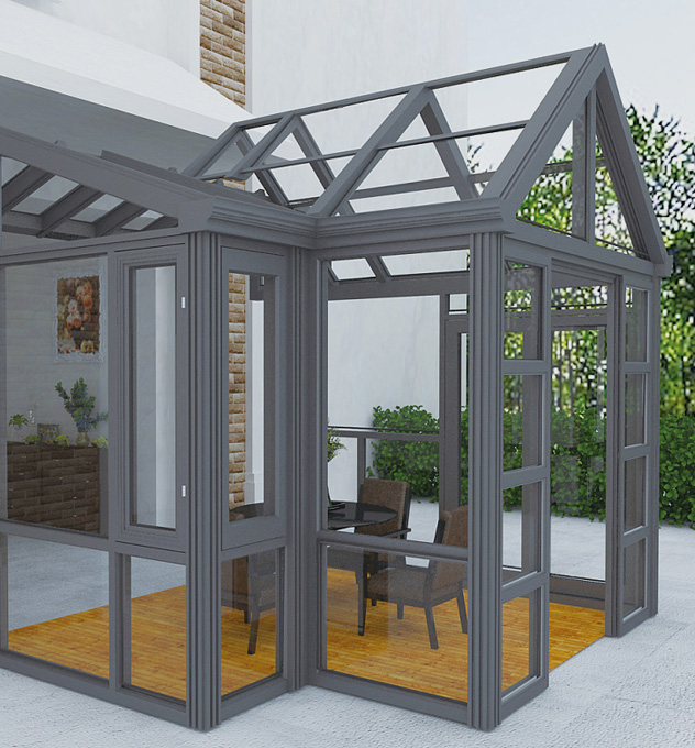 1..整体材料采用了铝合金结构组合而成,材质轻、性能好、密封性强;型材主要受力杆件厚度十足,可内套镀锌钢,具有较强的牢固性及承重能力,可做大跨度,大宽度无立面阳光房。